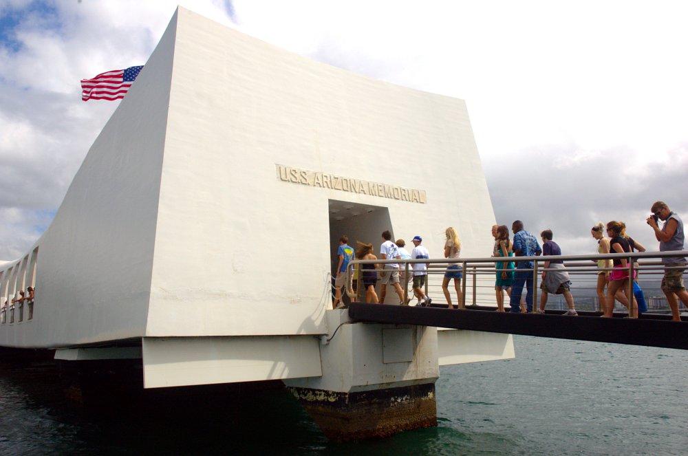 Michael Und diesmal haben wir uns sogar das kulturelle Programm um "Pearl Harbor" reingezogen. Wenn ihr im Geschichtsunterricht aufgepasst habt, wisst ihr, dass in diesem Hafen bei Honolulu auf der Hawaii-Insel Oahu eine Schlacht stattfand, nach der Amerika unmittelbar auf der Seite der Allierten in den zweiten Weltkrieg gegen Deutschland eintrat.