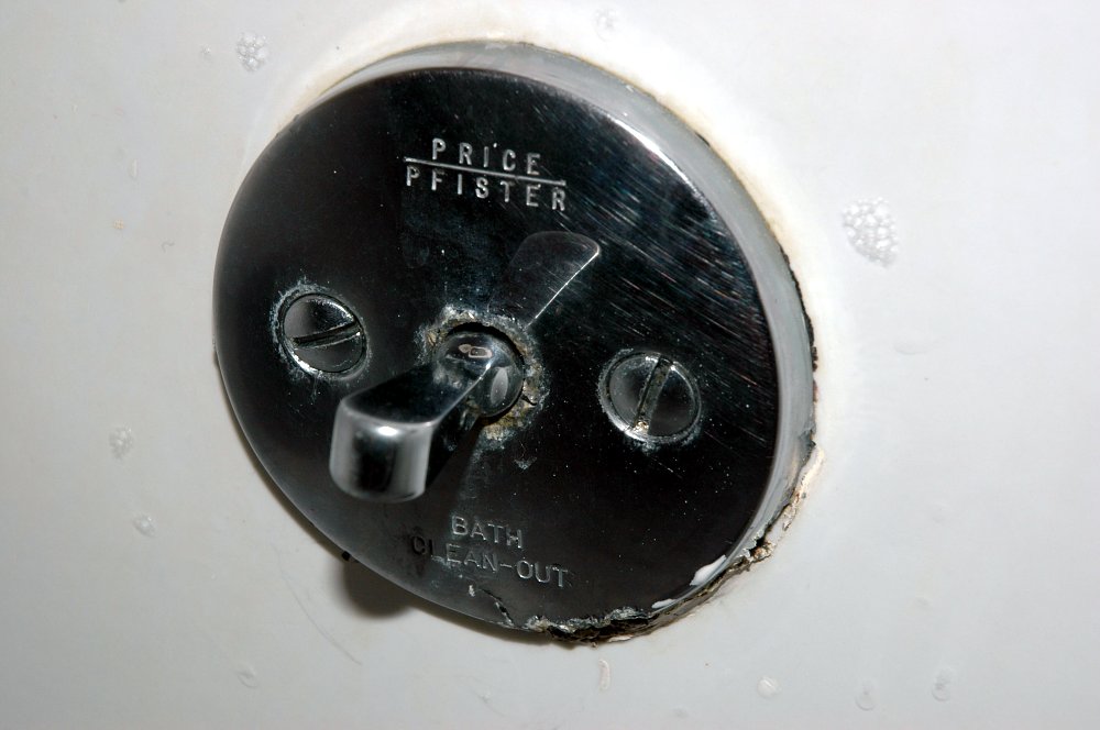 Michael In amerikanischen Mietwohnungen und billigen Hotels sind die Badewannen oft lächerlich klein. Unsere Wanne ist zum Beispiel 134cm lang, 58cm breit und 30cm tief. Jemand wie ich, der 1,85m groß ist, muss sich da schon ganz schön verrenken, um reinzupassen. Das wäre noch nicht so schlimm, aber zu allem Übel ist da noch ein Hebel (Abbildung 1), der den Badewannenabfluss auf- und zumacht, und dessen Metallverkleidung weist unten ein Notabflussloch auf. Das hat zur Folge, dass das Wasser in einer nur 30cm tiefen Badewanne nur 21cm hochsteigen kann, dann läuft es durch den Notabfluss ab!