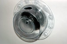 Das ist natürlich ein Irrsinn, nur ein trainierter Yogafritze könnte so mit allen Körperteilen unter Wasser bleiben. Als wir vor kurzem in einem Fachgeschäft für Badezimmerbedarf waren ("Bed, Bath and Beyond"), fiel mir an der Kasse ein neuartiger Artikel auf: der Wannenabflussverhinderer. Es handelt sich um eine Kappe aus weichem Plastik, die man über dem Notabfluss anbringt und mit auf der Rückseite anliegenden Saugnäpfen am Wannenrand befestigt (Abbildung 2).