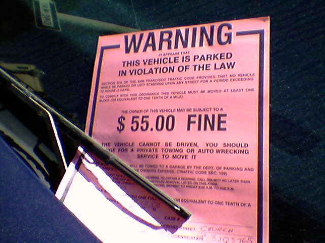 Oder in falscher Richtung parken? Dafür habe ich in Deutschland mal einen Strafzettel bekommen und mich tierisch über diese Kleinkariertheit aufgeregt -- allerdings kostet es laut Sektion VC22502B der Straßenverkehrsordnung in San Francisco ebenfalls 45 Dollar, wenn man den Wagen entgegen der Fahrtrichtung abstellt.