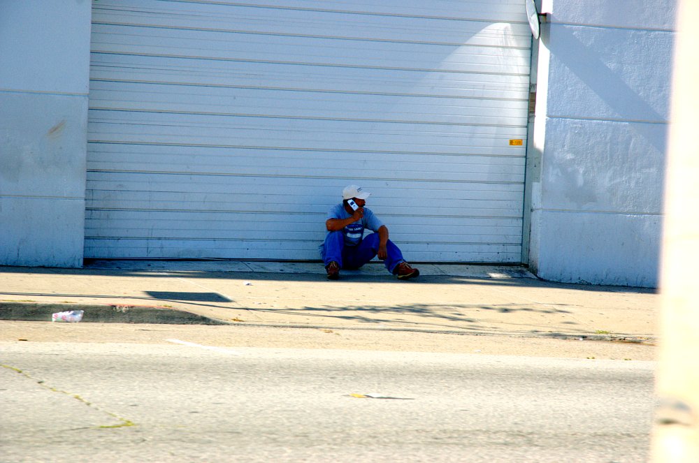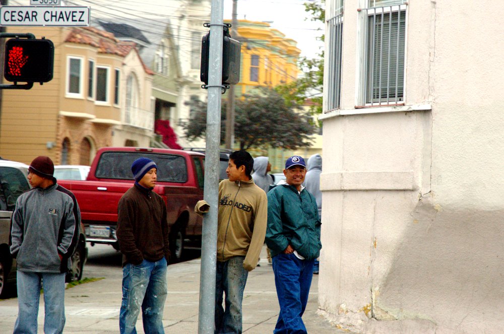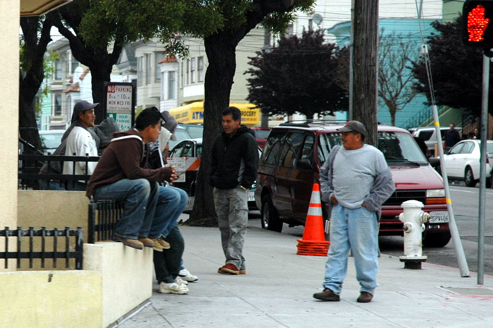 Auf der Cesar-Chavez-Street bei uns um die Ecke stehen schon früh morgens hunderte junger Südamerikaner in kleinen Grüppchen und winken den vorbeibrausenden Pickups zu, in der Hoffnung, dass sie einer zu einer Baustelle mitnimmt, wo sie zu einem frei verhandelbaren Lohn für einige Stunden schwere Arbeit verrichten. Man nennt sie "Esquineros", von dem spanischen Wort für Straßenecke, "Esquina". Weitere Auflesestellen mit massenhaft Arbeitswilligen finden sich in den Parkplätzen großer Baumärkte wie Home Depot oder Lowe's. Dort kann man auch die Spezialisierung der Arbeiter erkennen: Wer weiße Kleidung trägt, führt Malerarbeiten durch, der Rest ist für Handlangertätigkeiten zuständig. Es gibt zwar Konkurrenz unter den Arbeitern, die, wenn ein Baumarktkunde Interesse am Anheuern einer Hilfskraft zeigt, sofort hinrennen und wild herumfuchteln, doch läuft alles im allgemeinen auffallend friedfertig ab. Viele Illegale wollen unter keinen Umständen mit dem Gesetz in Konflikt kommen oder auch nur unangenehm auffallen, da ihnen sonst die Deportation droht.