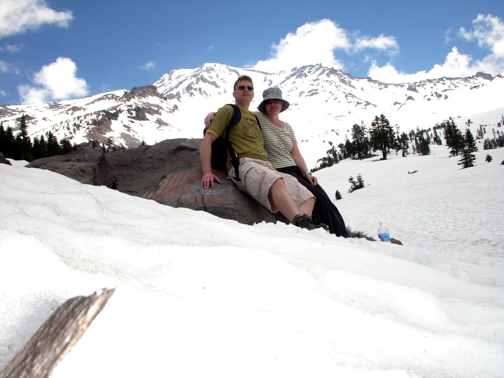 Angelika Wir haben ja schon einiges in Kalifornien abgeklappert, seit dem wir hier leben, aber einige weiße Flecken gibt es noch auf unserer Landkarte. An dem gigantischen Berg Mount Shasta an der Nordgrenze Kaliforniens sind wir zwar schon so manches Mal mit dem Auto vorbeigezischt, oder haben einen Blick auf ihn aus dem Flugzeug heraus erhascht, doch so richtig dort waren wir bis dato nicht.