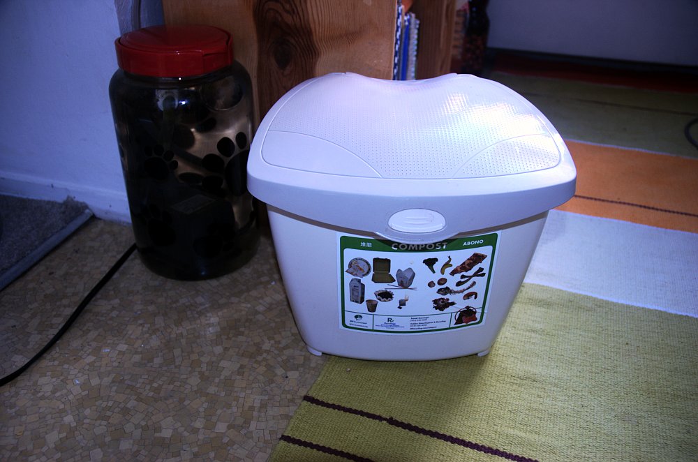 Wer es nicht befolgt, bekommt zunächt mehrere Verwarnungen und dann hagelt es Bußgelder von $100, die bis auf $1000 hochschnellen können. Zur Zeit versuchen es die Stadtväter aber noch im Guten. Sie geben Informationen aus, die die Bürger von San Francisco dazu bewegen sollen, die grüne Tonne ordnungsgemäß zu füllen. Die grünen Tonnen stellt die Stadt kostenlos bereit. Selbst ein etwa 30cm hohes, gut schließendes Eimerchen mit Aufkleber, auf dem steht, was alles rein darf, gab es als Geschenk für die Küche dazu.