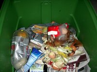 Nicht einmal lesen muss man können, um mitzumachen, denn die Plakate zeigen Fotos. Das ist durchaus sinnvoll in einer Stadt, in der viele Bürger nicht englisch sprechen. Leider gibt es in unserem Haus aber wohl einige Mitbewohner, die trotz der Fotos es nicht auf die Reihe kriegen, was in welche Tonne muss, denn neulich machte Michael die grüne Tonne in der Garage auf, um sich unseres Komposts zu entledigen und erblickte Plastikflaschen. Ahhh!