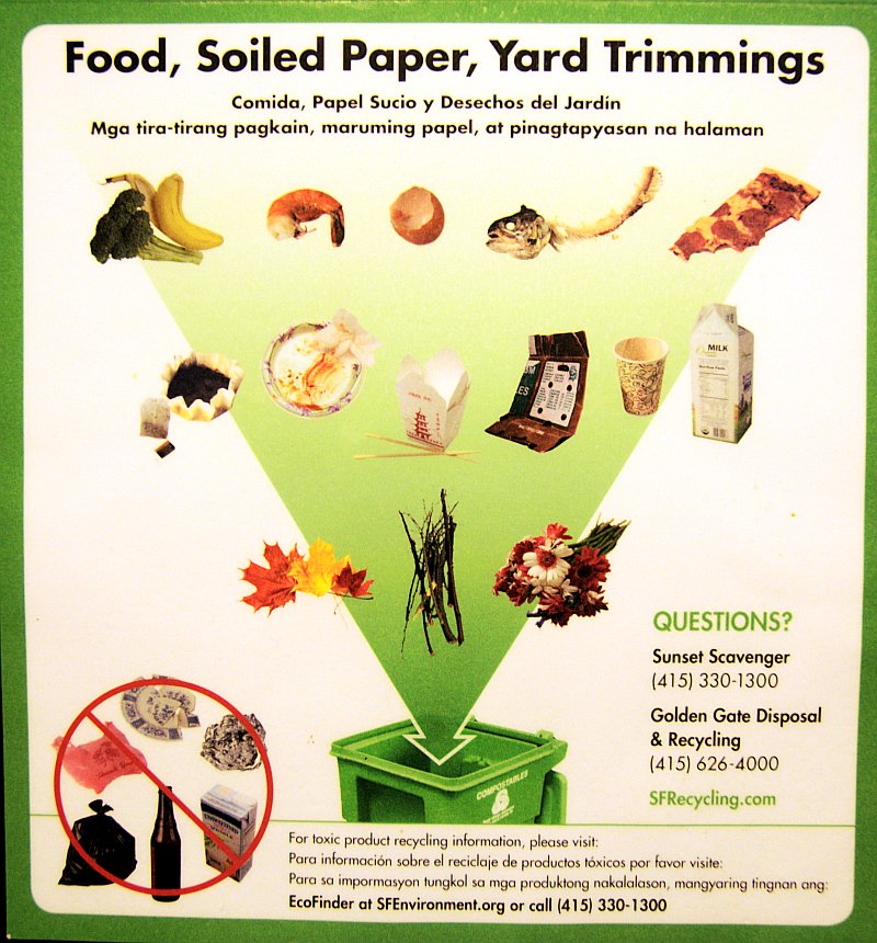 Auch die grüne Biotonne für Kompost gibt es schon seit langem, war aber bis jetzt kaum in größeren Apartementgebäuden anzutreffen. Seit Mitte Oktober kommen aber die Vermieter nicht mehr drum herum, sie aufzustellen, denn in San Francisco gilt nun per Gesetz, dass jeder den Müll trennen muss. Kompost in die grüne, Glas, Papier, Plastik in die blaue und der Restmüll in die schwarze Tonne. Das Gesetz gilt als eines der umfangreichsten in den USA.