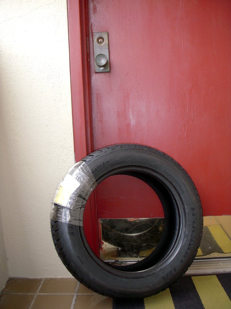 Im Internet wählte ich zielstrebig den Superreifenhändler tirerack.com an, der den Reifen für $59 plus $16 Versandgebühren anbot. Weil "Tire Rack" aus dem Bundesstaat Indiana aus operiert, fiel nicht einmal die kalifornische Verkaufssteuer an. Und nur zwei Tage später stellte der UPS-Zusteller den Reifen vor unserer Wohnungtür ab! Er war nicht mal verpackt, nur ein Etikett mit unserer Adresse klebte darauf. Würde ich bei UPS arbeiten, hätte ich ihn wahrscheinlich vom Aufzug aus mit Schwung durch den Gang zur Tür gerollt!