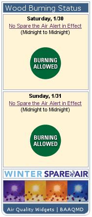 Ob Kaminfeuer an einem bestimmten Tag nun erlaubt sind oder nicht, kann man einfach auf der Air Quality Forecast im Internet nachsehen. Steht dort ein grünes Zeichen, darf man zündeln, falls es allerdings rot ist, ist es bei Strafe verboten. Man munkelt, dass mobile Trupps die Stadt an den verbotenen Tagen durchkreuzen, und Kamine auf verdächtige Rauchschwaden hin observieren. Der gesetzestreue Bürger schreibt sich auf baaqmd.gov ein und bekommt dann Emails mit den aktuellen Bedingungen zugestellt. Nachtrag 01/2014: Die Postille Half Moon Bay Patch berichtet, dass Umweltsünder, die während der Spare-The-Air-Tage Holz im Kamin abbrennen, 100 Dollar Strafe zahlen müssen.
