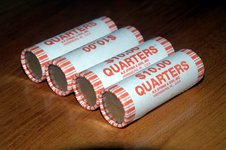 Die Gemeinschaftswaschmaschine unseres Mietshauses frisst tonnenweise Quarters, denn ein Waschgang kostet $1.50 und der zugehörige Trocknerlauf ebenfalls $1.50. Bei zwei Trommeln pro Woche sind das $6, wir brauchen also 24 Quarters! Soviele bringen wir normalerweise nicht zusammen, aber glücklicherweise hat Angelika vor einiger Zeit entdeckt, dass man in eine Filiale unserer Bank hineinmarschieren, hundert Dollar auf den Tresen knallen und Quarters verlangen kann, die die Bankangestellten dann in Münzrollen gebührenfrei herausgeben.
