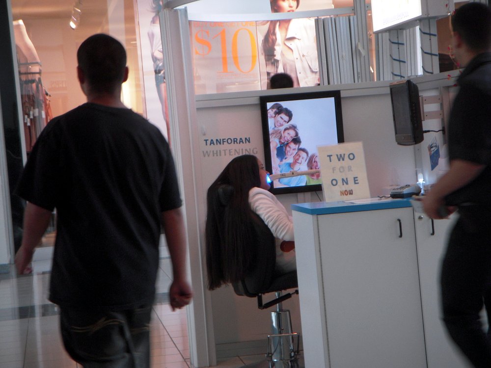Auch das von Showgrößen zur Schau getragene Ultraweiß im Zahnbereich ist längst bei Otto Normalverbraucher als Standard eingekehrt. Kaum eine Zahnpasta verkauft sich mehr ohne Weißmacher und Drogerien bieten allerlei Bleichprodukte feil, die man über Nacht auf die Zähne klebt. Professionelle Bleichverfahren trifft man längst nicht mehr nur in Zahnarztpraxen an. Neulich fiel mir in einer Shopping-Mall ein Stand auf, an dem die Shopper in aller Öffentlichkeit auf Sesseln Platz nahmen, um einen UV-Licht abstrahlenden Schlauch in den Mund zu nehmen! Als nächste Stufe erwarte ich den mobilen Bleich-Truck, der durch die Wohnviertel fährt und die Leute mit Slogans wie "Dreimal Bleichen, zweimal Zahlen" zum vergünstigten Zähneweißeln einlädt.