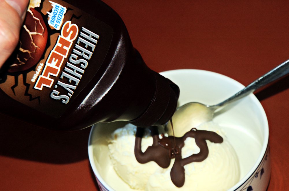 Michael Amerikanische Schokolade ist ja nicht so mein Ding, ich mag lieber aus Deutschland importierte Milka Noisette. Doch mit einer neuen Erfindung haben die amerikanischen Schokomagnaten die deutschen jetzt zumindest in einem Marksegment hinter sich gelassen: Die flüssige Schokolade von Hershey's, die nach wenigen Sekunden an der Luft erstarrt.