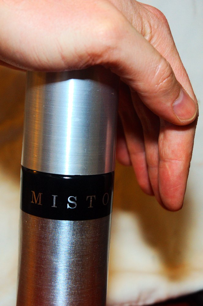 Das zehn Dollar teure Teil ist angeblich aus Europa (wenngleich ich nicht glaube, dass sich ein Produkt namens "Misto" in Deutschland verkaufen ließe) und lässt sich im Misto-Infomercial auf Youtube bewundern.