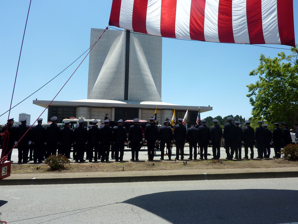 Nun werdet ihr vielleicht sagen: "Jaja, das ist tragisch, aber warum schreibt ihr darüber?" Geduld, Geduld. Das staatsaktartige Begräbnis der Feuerwehrleute überraschte mich dann doch. Die Trauerfeier fand in der St. Mary's Cathedral in San Francisco statt und nicht nur Feuerwehrleute und Rettungskräfte aus allen Teilen der USA reisten dazu an, sondern auch führende kalifornische Politiker. Auch alle lokalen Fernsehsender übertrugen die Trauerandacht.