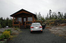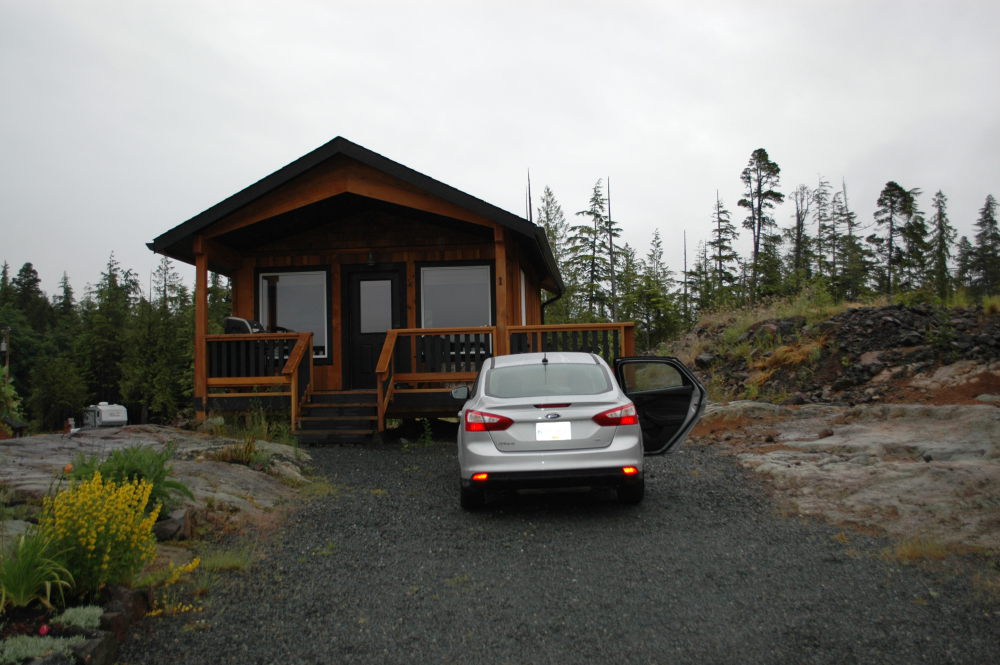 Auf der langen Autofahrt nach Norden erstaunte uns die dichter werdende Bewaldung, und wir sahen nur noch wenige Menschen, fanden schließlich nur noch eine einzige nennenswerte Landstraße und viele unbefestigte, vorwiegend von Holzfällertrucks befahrene Wege vor. Wir kamen in einer Holzhütte unter, etwas außerhalb des Städtchens Port Hardy.