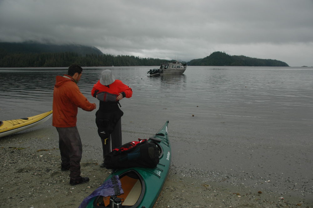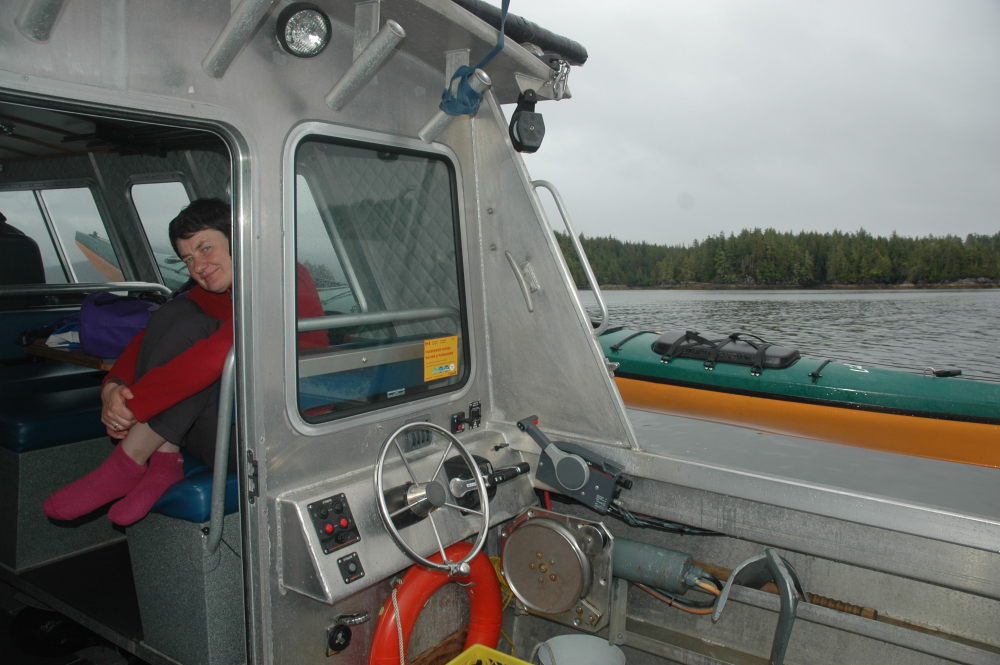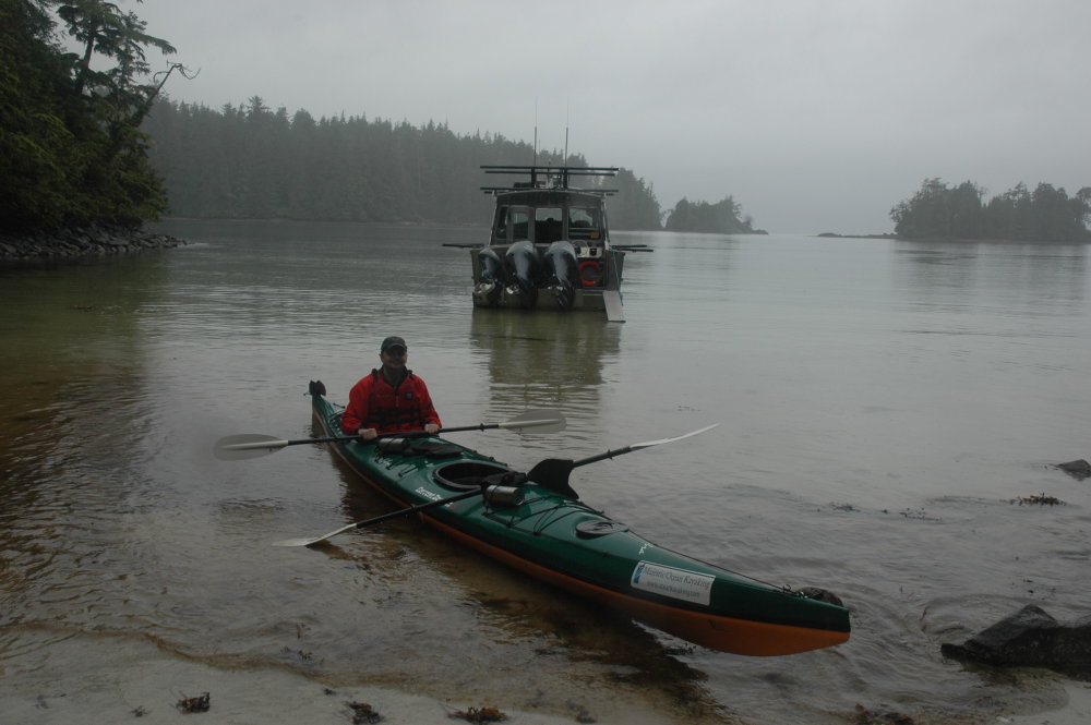 Michael Um die Tier- und Pflanzenwelt der sogenannten "Broken Islands" in der Bucht südlich von Tofino zu erkunden, buchten wir eine geführte Ganztages-Kajaktour. In der Früh um acht fuhren wir in einem kleinen Zubringerboot mit aufgeschnallten Kajaks zu der Inselgruppe, um dort an einem Sandstrand Proviant in die Kajaks zu packen, die Ausrüstung anzulegen und loszupaddeln.
