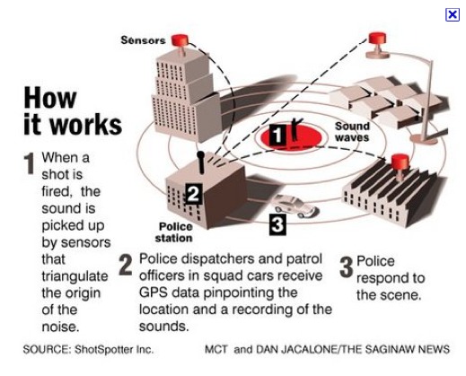 Leider feuern viele Übermütige allerdings nicht exakt senkrecht in die Luft, sondern weichen bis zu 45 Grad ab, was der Kugel eine horizontale Komponente verpasst, die ihr auch noch auf einige Entfernung eine tödliche Wirkung verleiht. Um die wildgewordenen Cowboys zu fassen, hat die Stadt Redwood City im Silicon Valley seit letztem Jahr ein System namens "Shot Spotter" installiert, das Schüsse aus Feuerwaffen stadtweit registriert und nach einem ausgeklügelten Verfahren den genauen Ort des Abfeuerns bestimmt. Ballert also jemand in Redwood City in die Luft, steht Minuten später die Polizei auf der Matte und klimpert mit den Handschellen.