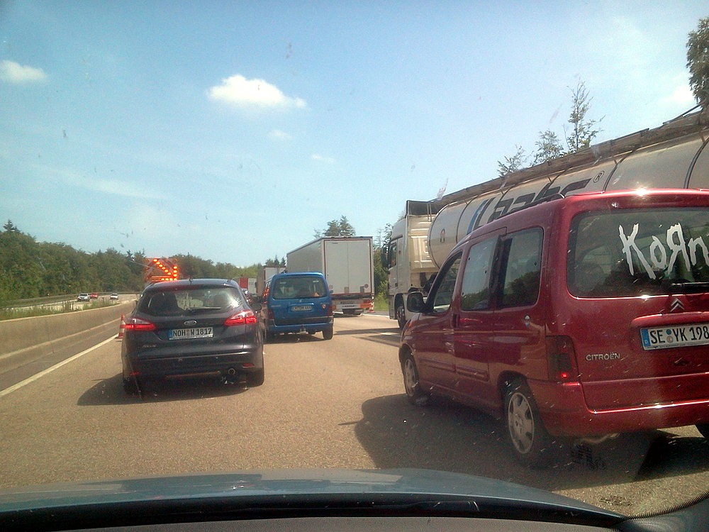 Michael Wie diszipliniert die Deutschen Auto fahren! Vermindert sich die Anzahl der Spuren an einer Baustelle, fahren fast alle vorschriftsgemäß vor bis zur Verengung und fädeln dann abwechselnd von rechts und links, gemäß der vom Verkehrsministerium erlassenen Vorschrift ein. Die Fahrer verringern zwar die Geschwindigkeit, doch Stocken oder gar Staus entstehen meist gar nicht.