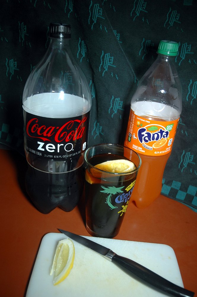 Michael Das deutsche Autofahrergetränk Spezi gibt es leider nirgendwo in Amerika, und auch Surrogatdrinks wie Mezzo-Mix fehlen völlig in den Supermarktregalen. Neulich gelang mir durch Zufall eine erstaunlich gut schmeckende Kopie aus vier ungewöhnlichen Zutaten: Eiswürfel, organischer Zitronenschnitz mit Schale, 4/5 Coke Zero und 1/5 amerikanische Fanta.