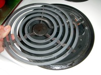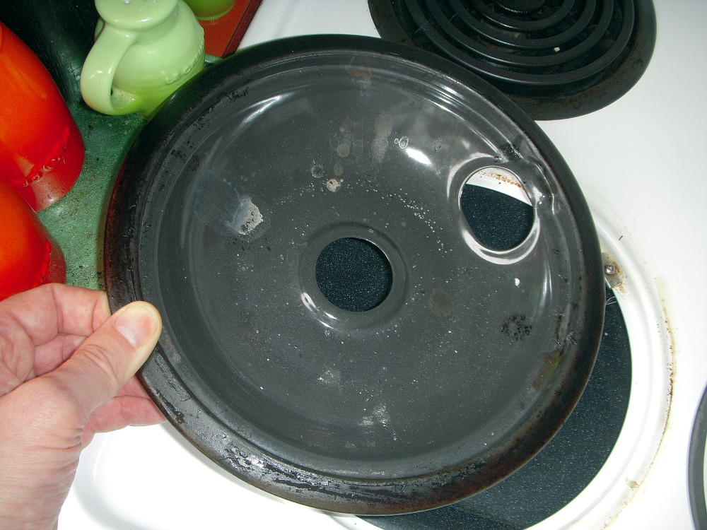 Wurde es über Jahre hinweg nicht gereinigt und pappen darauf schon stark verkohlte und verkrustete Essensreste, die sich nicht mehr lösen lassen, kann man im Baumarkt einen Vierersatz dieser Auffangbleche zum Gesamtschlagerpreis von etwa 10 Dollar nachkaufen. Dafür bekommt man zwei große und zwei kleine Bleche, entsprechend der auf allen Herden genormten Plattengrößen. Auch die Spiralen sind genormt und auch sie bekommt man im Baumarkt für wenig Geld, falls sie kaputtgehen. Praktisch!