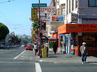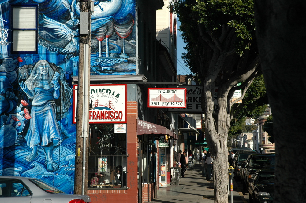 Durch die Mission (mexikanisches Viertel) wandern. Eventuell in einer Taqueria einkehren und einen Burrito oder Tacos essen. Gut sind die Läden, vor denen die meisten Leute anstehen. Empfohlen: "La Taqueria" (2889 Mission Street), "Papalote" (3409 24th Street). Empfohlene Wanderstrecke: Auf der 24th Street von der Portrero Street bis zur Valencia Street. Auf der Balmy Street (kleine Gasse zwischen Harrison St und Treat Ave) kurz reinschauen, dort sind schöne Murals (Wandmalereien). Auf der Valencia St. von der 24th Street bis zur 16th St. die teilweise hippen/verrückten Läden abklappern. Mutige gehen ganz vor bis zur Market und sehen auf Höhe der 14th ziemlich heruntergekommene Strecken. Alternative: vorher rechts auf die 16th St. abbiegen und eine Kneipe aufsuchen. Oder: Zeitgeist-Bar/Biergarten auf der Valencia St., Querstraße 14th Street.