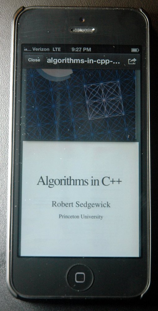 In Abbildung 5 seht ihr, wie ein digitalisiertes Papierbuch aus meiner ehemaligen Bibliothek auf meinem neuen iPhone5 erscheint. Es lässt sich sogar auf der kleinen Anzeige gut lesen, und sogar noch besser auf einem großformatigeren iPad oder Android-Tablet. Die zerschnetzelten Bücher sind allesamt in der Altpapiersammlung gelandet.