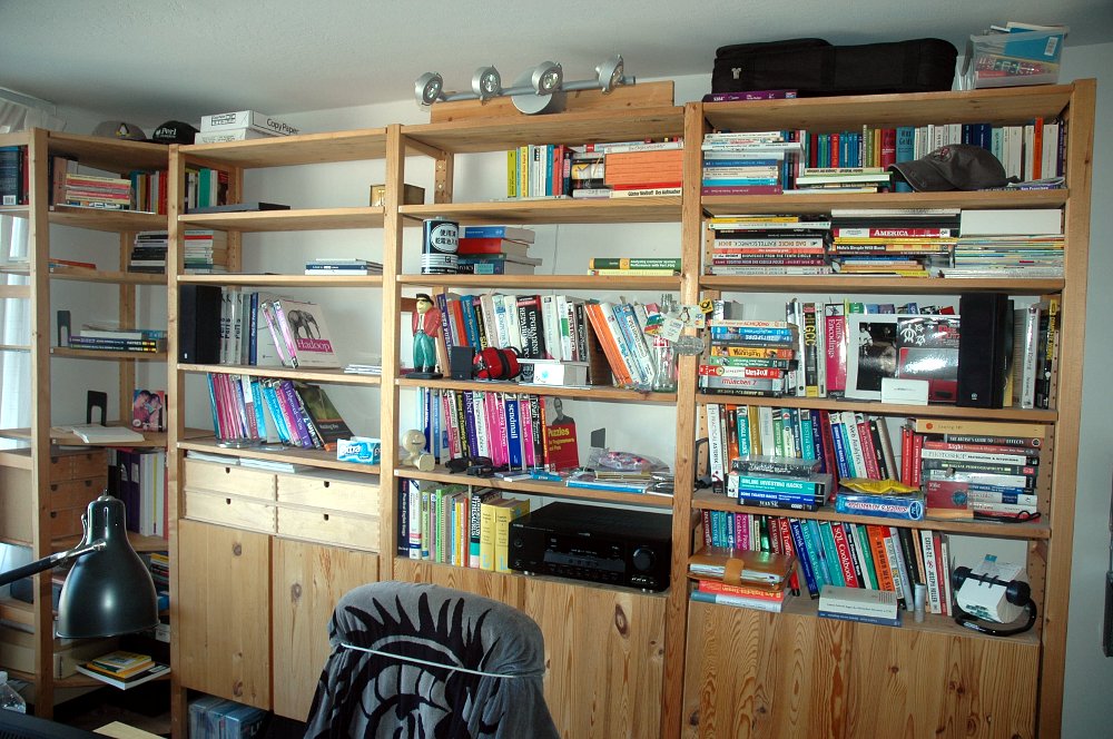 Neue Bücher kaufe ich neuerdings digital bei Amazon für den Kindle, und das Format kann man auch auf allen möglichen Tablets und Mobiltelefonen lesen. Dank dem neuen Schnetzelverfahren stehen nun auch die Papierwälzer digital parat, die bislang zuhause Regalmeter verfraßen. Mit ausgelöst haben den radikalen Schnitt natürlich die erhöhten Gepäckgebühren beim Flug in den Urlaub. Da ich mir nicht mehr erlauben kann, 2 Kilo Bücher mitzunehmen, nehme ich jetzt einen iPad mit und schon kann ich lesen was ich will, wann immer es mir beliebt.